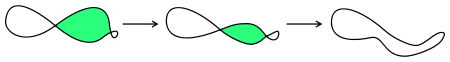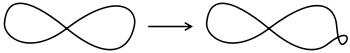 Once one has two opposite double points, one constructs a closed loop connecting the two, giving a closed path in R2m. Since R2m is simply connected, one can assume this path bounds a disc, and provided 2m > 4 one can further assume (by the weak Whitney embedding theorem) that the disc is embedded in R2m such that it intersects the image of M only in its boundary. Whitney then uses the disc to create a 1-parameter family of immersions, in effect pushing M across the disc, removing the two double points in the process. In the case of the figure-8 immersion with its introduced double-point, the push across move is quite simple (pictured).