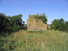 It stands on an abrupt eminence, shaded with old ash trees, and behind it is a flat open space sufficient for a garden and the offices attached to the residence of a landowner in the ancient warlike times with which it is associated. An old dirt road winds round it in a gully leading north from the Leader Water, the whole immediate area being commanded by the fortress. The walls of this square pele are now in ruins. The huge vault on the ground floor remains largely intact and the turnpike stairs situated within the thick walls still takes one to the first floor level. The ceiling of the vault is of a quarried greywacke that splits into thin slabs, which are fitted edgeways with little art. In the 1880s when more of the building was intact at the top could be seen a square aperture for pouring boiling liquids such as melted pitch on the heads of assailants. The main living apartments were on the third floor, still intact in the 19th century, as was the roof. Both have now collapsed. Several of the foundation stones are immense rolled unsquared boulders, that must have been dragged there by oxen. The northern end is built of unquarried stones, that may have been collected from the fields or the river sides, their angles being worn off like stones rolled by water, or polished by the glacial drift. This end is now badly decayed, not helped by trees rowing through it. Most of the stones incorporated in the building are of greywacke; several of the corner blocks have been picked out; and the dressed stones of the fireplaces and windows have been stolen.[2]