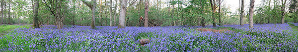 It is notable for bluebells in mid-Spring in many parts of the forest together with other ancient woodland indicator species such as Yellow rattle and the Lesser celandine. There are stands of beech and oak interspersed with hazel coppice as well as conifer plantations within the forest. The conifer plantations are slowly being removed as a part of a national policy to restore ancient woodland. They will be replaced with native hardwoods such as oak and beech. As with most ancient woods, coppicing is no longer practised, and many former coppice stools can be seen in the woods.
