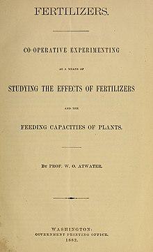 - Wilson, P.W. (1963), "Biological Nitrogen Fixation--Early American Style (Samuel W. Johnson and Wilbur O. Atwater)", Bacteriological Reviews (published December 1963), 27 (4), pp. 405–16, doi:10.1128/mmbr.27.4.405-416.1963, PMC 441202, PMID 14097349