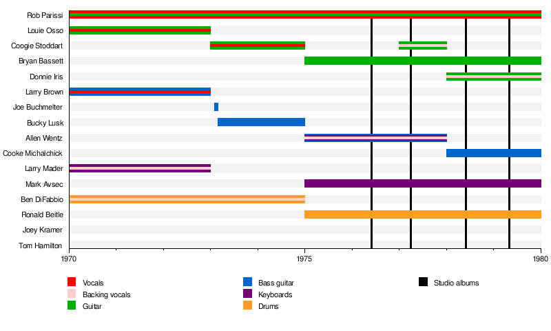 Past members | Rob Parissi Ben Difabbio Louie Osso Larry Brown Larry Mader Coogie Stoddart Joe Buchmelter Bucky Lusk Ron Beitle Bryan Bassett Allen Wentz Donnie Iris Cooke Michalchick Mark Avsec Ron Vallera |