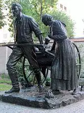 Not all emigrants made it to their destination. The dangers of the overland route were numerous: snakebites, wagon accidents, violence from other travelers, suicide, malnutrition, stampedes, Indian attacks, a variety of diseases (dysentery, typhoid, and cholera were among the most common), exposure, avalanches, etc. One particularly well-known example of the treacherous nature of the journey is the story of the ill-fated Donner Party, which became trapped in the Sierra Nevada mountains during the winter of 1846–1847 in which nearly half of the 90 people traveling with the group died from starvation and exposure, and some resorted to cannibalism to survive.[108] Another story of cannibalism featured Alfred Packer and his trek to Colorado in 1874. There were also frequent attacks from bandits and highwaymen, such as the infamous Harpe brothers who patrolled the frontier routes and targeted migrant groups.[109][110]