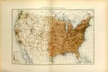 Farms were for sale with from ten to fifty acres cleared, possessing log houses, peach and sometimes apple orchards, enclosed in fences, and having plenty of standing timber for fuel. The land was sown in wheat and corn, which were the staples, while hemp [for making rope] was being cultivated in increasing quantities in the fertile river bottoms.... Yet, on the whole, it was an agricultural society without skill or resources. It committed all those sins which characterize wasteful and ignorant husbandry. Grass seed was not sown for hay and as a result, the farm animals had to forage for themselves in the forests; the fields were not permitted to lie in pasturage; a single crop was planted in the soil until the land was exhausted; the manure was not returned to the fields; only a small part of the farm was brought under cultivation, the rest being permitted to stand in timber. Instruments of cultivation were rude and clumsy and only too few, many of them being made on the farm. It is plain why the American frontier settler was on the move continually. It was, not his fear of too close contact with the comforts and restraints of a civilized society that stirred him into a ceaseless activity, nor merely the chance of selling out at a profit to the coming wave of settlers; it was his wasting land that drove him on. Hunger was the goad. The pioneer farmer's ignorance, his inadequate facilities for cultivation, his limited means, of transport necessitated his frequent changes of scene. He could succeed only with virgin soil.[79]
