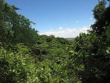 A total of 5,692 species of vascular plant has been recorded in the country, of which 145 species are considered to be threatened.[3] Most of the terrain of Mozambique is covered by wooded savanna, grassland with a scattering of trees but an open canopy. In the northern part of the country this is miombo woodland, dominated by Brachystegia trees, covering about 70% of the country. In drier areas further south, mopane woodland predominates, with Acacia woodland in some areas in the south and in riverside locations in the north. Forest cover is mostly limited to the upper mountain slopes and some gallery forests, with some patches of dry lowland forests occurring in certain coastal areas, notably near Cape Delgado and around Dondo.[4] The Maputaland-Pondoland-Albany Hotspot in southern Mozambique and northeastern South Africa, is a biogeographic region with significantly high levels of biodiversity and plant endemism.[5]