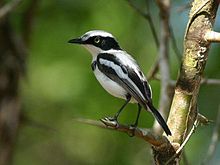 Large numbers of birds are either resident in or migrate across Mozambique, 768 species having been recorded, including 34 globally threatened species.[9] Some notable examples include the lesser jacana, the crab-plover, the mangrove kingfisher, the Böhm's bee-eater, the racket-tailed roller, the African pitta, the green-headed oriole, the collared palm thrush, the pale batis, the lowland tiny greenbul, the lesser seedcracker and the locust finch.[10]