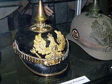 The distinctive spiked helmet, the so-called Pickelhaube, although it had existed previously, and not only in the German Empire, was symbolic for the Wilhelmine period, for the Imperial Army, and German militarism in general (in various sign languages, the extended forefinger placed in front of the forehead, indicating the spiked helmet, is still the sign for "German"). The term is equally applied to the distinctive styles prevailing in the visual arts and architecture of the period, for example the ornate Germania postage stamps,[1] numerous government buildings as well as the Wilhelmine Ring housing areas of Berlin and many other German cities. It is also used to describe, among other things, an essentially Neo-Baroque, extraordinarily prestige-oriented style of architecture calculated to give expression to the German state's claim to imperial power. This style was particularly exemplified by the grandiose Siegesallee, a boulevard of sculptures lampooned by Berliners as Puppenallee ("mall of dolls"), and was given official status by Wilhelm's so-called "Rinnsteinrede" ("gutter speech") on what he considered modernist degenerate art at the inauguration of the extravagant boulevard on December 18, 1901.