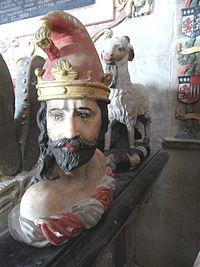 ![]() Effigy of William Bourchier, 3rd Earl of Bath (died 1623), wearing an earl's coronet and robes with ermine collar with sapphire clasp, St Peter's Church, Tawstock, Devon | |