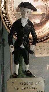 William Combe (25 March 1742 – 19 June 1823) was a British miscellaneous writer. His early life was that of an adventurer, his later was passed chiefly within the "rules" of the King's Bench Prison. He is chiefly remembered as the author of The Three Tours of Doctor Syntax, a comic poem, illustrated by artist Thomas Rowlandson's color plates, that satirised William Gilpin. Combe also wrote a series of imaginary letters, supposed to have been written by the second, or "wicked" Lord Lyttelton. Of a similar kind were his letters between Swift and "Stella". He also wrote the letterpress for various illustrated books, and was a general hack.