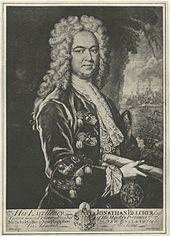William Dummer was born in Boston, the capital of the Province of Massachusetts Bay, to Jeremiah Dummer, the first American born silversmith, and Anna (Atwater) Dummer.[1] His grandfather was Richard Dummer, an early Massachusetts settler and one of the colony's wealthiest men, and he was also related to the magistrate Samuel Sewall.[2][3] Dummer was the oldest of nine children, only four of whom survived to adulthood. He was baptized at Boston's Old South Church on September 29, 1677 (O.S.) [= October 10, 1677 (N.S.)].[4][5]