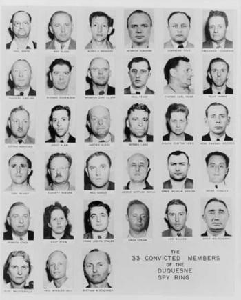 This article incorporates public domain material from the United States Government document: "https://www.fbi.gov/about-us/history/famous-cases/the-duquesne-spy-ring/33-members Federal Bureau of Investigation: The Duquesne Spy Ring • The 33 Members of the Duquense Spy Ring (publicly released on 12 March 1985 under the Freedom of Information Act)". - ^ Kahn, David (1978). Hitler's Spies, Germany Military Intelligence in World War II. Da Capo Press. ISBN 0-306-80949-4.