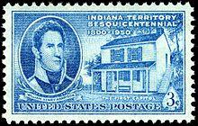 Harrison also served on the committee that decided how to divide the Northwest Territory into smaller sections. The committee recommended splitting the territory into two segments. The eastern section, which continued to be known as the Northwest Territory, comprised the present-day state of Ohio and eastern Michigan; the western section was named the Indiana Territory and consisted of the present-day states of Indiana, Illinois, Wisconsin, a portion of western Michigan, and the eastern portion of Minnesota.[35][37] The two new territories were formally established in 1800 following the passage of 2 Stat. 58.[38]