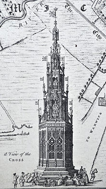 He left £200 (equivalent to £50,950 in 2019)[5] in his will to pay for the Coventry Cross which was built in 1544, and taken down in 1771.[6] A replica was unveiled in 1976.