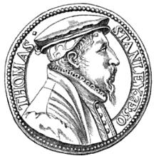 While these mining ventures were ongoing, Humfrey was embroiled in a scandal at the Mint. In October 1565 the Under-Treasurer of the Mint, Thomas Stanley,[8] had charged Humfrey with robbery.[9][2][1] The allegations were confirmed in a confession by Humfrey's colleague, John Bull, Comptroller of the Mint, who admitted that he and Humfrey had attempted to discredit Stanley by stealing money under his control.[10][8] An investigation followed, and a letter of 10 November from Thomas Smythe expressing the wish that he could deliver Humfrey from his 'unexpected thraldom' suggests that Humfrey was imprisoned for a time.[11] In April 1567 the State Papers record that Humfrey was to be restored to his office of Assay Master.[12][1] According to Challis, Humfrey could not have survived this episode had he not had the favour of Sir William Cecil.[13]