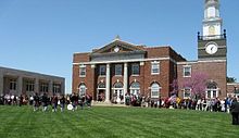 The college is named after Dr. William Jewell, who in 1849 donated $10,000 to start a school. Jewell, who was from Columbia, Missouri, had wanted the school built in Boonville, Missouri. However, Liberty resident Alexander William Doniphan argued that donated undeveloped land in Liberty would be more valuable than the proposed developed land in Boonville, and Liberty was eventually chosen. Judge James Turner Vance Thompson donated the hilltop land on which the campus sits. In the American Civil War during the Battle of Liberty, the main building on campus, Jewell Hall, was used as a hospital, infirmary, and stables for the United States Army. Union troops were buried on the campus. It was listed on the National Register of Historic Places in 1978.[3] The Mt. Memorial Cemetery, listed on the National Register of Historic Places in 2012, is located on the campus grounds.[4]