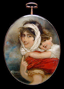Anne Becher and Richmond Thackeray were married in Calcutta on 13 October 1810. Their only child, William, was born on 18 July 1811.[19] There is a fine miniature portrait of Anne Becher Thackeray and William Makepeace Thackeray, aged about two, done in Madras by George Chinnery c. 1813.[20]