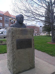 A bust of him by Oscar Nemon stands in the park in the town square of Newcastle, New Brunswick, not far from where he sold newspapers as a young boy.[33] His ashes are in the plinth of the bust.[12]