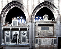 - Heere lyeth the body of Sr. William Peryam, knight, who in AD 1579 was made one of the justices of the Court of Comon Pleas & from thence in AD 1592 was called to bee Lord Cheefe Baron of the Exchequer. He married first Margery daughter & heir of Jo(hn) Holcott of Berk(shire) Esqr. widow of Richadr(sic) Hutchenson of Yorksheire Esqr.; secondly Anne daughter of John Parker of Devon Esqr.; lastly Elizabeth daughter of Sr. Nic(holas) Bacon knig. Lord Keeper of the Great Seale. Hee hadd only yssue by his second wife, 4 daughters & heires, viz, Mary theldest (sic) married to Sr. Will(iam) Pole of Devon knig.; Elizabeth the 2 married to Sr. Ro(bert) Bassett of Devon knig.; Jane the 3 first married to Thomas Poyntz Esqr. son & heir of Sr. Gabriell Poyntz of Ess(ex) knig.; afterward to Tho(mas) Docwra of Hertf(ordshire) Esqr.; Anne the youngest married to Will(iam) Williams Esq. son & heir of Sr. Jo(hn) Williams of Dorsett knig. All wch. his daughters & heirs have yssu now lyvinge by their severall husbands. He dyed 9 octo(ber) Ao.Do. 1605 (sic) in the 70the yeere of his age much & worthely reverenced for his religeous zeale, integrity & profound knowledge in the lawes of the realme. Dormit non est mortuus (he sleeps, he is not dead)