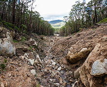 Throughout the 1880s and '90s a public campaign to protect the area as a national park was waged, including by the Field Naturalists' Club of Victoria.[10] The promontory has been a national park, to one degree or another, since 1898. Wilsons Promontory National Park, also known locally as "the Prom", contains the largest coastal wilderness area in Victoria. Until the 1930s, when the road was completed, it was accessible only by boat.[10] The site was closed to the public during World War II, as it was used as a commando training ground. The only settlement within Wilsons Promontory is Tidal River which lies 30 kilometres (19 mi) south of the park boundary and is the focus for tourism and recreation. This park is managed by Parks Victoria.[11] In 2005 a burn started by staff got out of control and burnt 13% of the park, causing the evacuation of campers.[12] In 2009, a lightning strike near Sealer's Cove started a fire that burned over 25,000 hectares (62,000 acres). Much of the area had not been burned since 1951.[13] The fire began on 8 February, the day after "Black Saturday", where an intense heat wave, combined with arson, faulty electrical infrastructure and natural causes, led to hundreds of bushfires burning throughout the state of Victoria. Although the fire burned to within 1 kilometre (0.62 mi), the Tidal River camping area and park headquarters were unaffected. The park reopened to the public one month after the incident and the burned areas quickly regrew.[14] Despite the damage, the natural beauty of the area remained largely intact.[15]