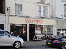 Wimpy is the brand name of a multinational chain of former fast food restaurants that has been gradually upgrading units to become casual dining style diners with table service since a change of ownership that occurred in 2007. The brand is headquartered in Johannesburg, South Africa. The chain began in 1934 in the United States and was based in Chicago. The brand was introduced to the United Kingdom in 1954 as "Wimpy Bar".[1] Wimpy grew to approximately 1,500 locations in several countries before narrowing to a few hundred locations in two countries. Wimpy's worldwide headquarters was located in the United States and the United Kingdom before relocating to South Africa.