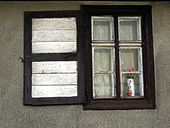 An exterior hurricane shutter or storm shutter is used to protect windows and doors in a building against the effects of high winds, rain, and flying objects during a hurricane, or as a security shutter over an opening. They can be made of a variety of materials such as fiberglass, steel, aluminum, wood or composite wood and can be installed in tracks to be quickly opened and closed manually or with motorized controls. The track-mounted storm shutters in America are of German design and are frequently of German manufacture. The walls of American houses are typically too thin to conceal the boxes that hold the shutters when open, so the boxes are visible on the exterior above the windows. There are also high-impact-resistant plastics that can be applied to new or existing wood shutters that provide hurricane protection.