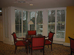 Depending on the application, and the construction of the window frame, shutters can be mounted to fit within the opening or to overlap the opening. The term window shutter includes both interior shutters, used on the inside of a house or building, and exterior shutters, used on the outside of a structure. On some styles of buildings it is common to have shutters to cover the doors as well as the windows.[1]