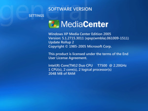 To determine the underlying edition of Windows XP on which a particular revision of MCE is based, the System Properties Control Panel applet can be used. To determine the revision of MCE that is being used, select the About Media Center option from the General -> Settings area inside MCE.