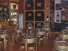 A wine cellar is a storage room for wine in bottles or barrels, or more rarely in carboys, amphorae, or plastic containers. In an active wine cellar, important factors such as temperature and humidity are maintained by a climate control system. In contrast, passive wine cellars are not climate-controlled, and are usually built underground to reduce temperature swings. An aboveground wine cellar is often called a wine room, while a small wine cellar (fewer than 500 bottles) is sometimes termed a wine closet. The household department responsible for the storage, care and service of wine in a great mediaeval house was termed the buttery. Large wine cellars date back over 3700 years.[1]