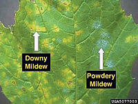 - Oidium is a powdery mildew that can attack all green parts of the vine. If left untreated, oidium can be terminal for the plant. It thrives in cooler temperatures and in the shade.[38] Some North American vine species have evolved to show resistance to the mildew (3:37).