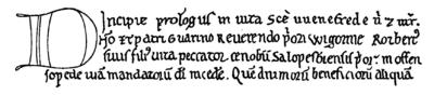 The details of St. Winefride's life are gathered from a manuscript in the British Museum, said to have been the work of the British monk, Elerius, a contemporary of the saint, and also from a manuscript life in the Bodleian Library, generally believed to have been compiled (1130) by Robert, prior of Shrewsbury.[3] Prior Robert is generally credited with greatly promoting the cult of St Winifred by translating her relics from Gwytherin to Shrewsbury Abbey and writing the most influential life of the saint.[12] John of Tynemouth also wrote of Winifred.