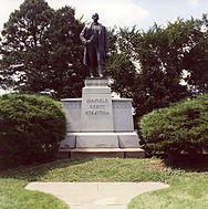 A bronze statue of Stratton by Nellie Walker was placed on the grounds of his estate in 1909.[b]