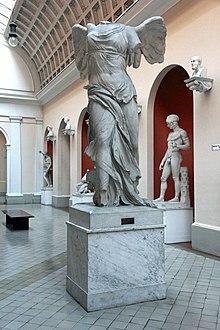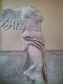 - ^ Louvre Website: The goddess of Victory (Nike, in Greek) is shown in the form of a winged woman standing on the prow of a ship, braced against the strong wind blowing through her garments. With her right hand cupped around her mouth, she announced the event she was dedicated to commemorate. Retrieved 2021-01-12