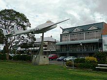 Central Park itself is home to "The Log," a massive log felled in the surrounding countryside which serves to remind the townsfolk of the timber (and dairy) driven history of the area, a de Havilland Vampire fighter plane (opposite the RSL Club), a cricket pitch (Phil Tufnell played an exhibition match in Wingham in which he was bowled for a duck in the first innings, by Glenn Levine, but made a good fist of it in the second), some children's play equipment, a drinking fountain commemorating the installation of mains water in the town, a small ornamental waterfall (which has been filled in with a garden), and two flag poles at opposite ends of the northern side of the park.