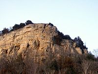 The Wisconsin Territory was established by the federal government effective July 3, 1836, and existed until its eastern portion was granted statehood (as Wisconsin) in 1848. The federal government set up the Minnesota Territory effective March 3, 1849. The newly organized territorial legislature created nine counties across the territory in October of that year. One of those original counties, Wabasha, had its southern section partitioned off on March 5, 1853, into a new county, Fillmore. On February 23, 1854, the legislature partitioned the northern part of Fillmore County, plus a small section of Wabasha, to create Winona County, with the village of Winona as county seat.[2] The county name was taken from the village name, which is said to derive from a Dakota legend about a woman, Winona, (a relative of Chief Wabasha) who was betrothed to a warrior she did not love. Rather than marry him, she jumped to her death from a rock on Lake Pepin now called "Maiden's Rock".[3] This is known as the Winona legend.[4]