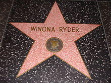 On April 27, 2000, during the San Francisco Film Festival, Ryder was awarded the Peter J. Owens Award, presented to an actor "whose work exemplifies brilliance, independence and integrity."[72] In September 2000, Ryder made a guess appearance in the finale episode of Comedy Central's Strangers With Candy with Amy Sedaris and Stephen Colbert.[73] Later in 2000, she was one of several celebrities who made small cameo appearances in Zoolander (released in 2001). On October 6, 2000, Ryder received her own star on the Hollywood Walk of Fame, located directly in front of the Johnny Grant building next to the Hollywood Roosevelt Hotel on Hollywood Boulevard, where Grant said "he can watch over her every day". Ryder, who was overwhelmed by the honour, said in her speech, "It's the only time I'll ever be able to say I'm thrilled to get walked all over."[74] For this event, Ryder was voted 'Best-Dressed of the Week' by Entertainment Weekly.[75] She was the 2,165th recipient of this honor.[3]