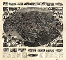 Settled in 1750,[5] the city of Winsted was formed at the junction of the Mad River and Still River, and was one of the first mill towns in Connecticut. Manufactured products started with scythes at the Winsted Manufacturing Company in 1792. The city is within the town of Winchester, and its name derives from the fact that it is the business center for the towns of Winchester and Barkhamsted.