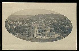There are five stone churches in a crescent from east to west. In their exact center is the Castle Tower Civil War monument, a stone tower of over 40 feet erected in 1890.[9]