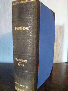 The Wisconsin Blue Book is a biennial publication of the Wisconsin's Legislative Reference Bureau. The Blue Book is an almanac containing information on the government, economics, demographics, geography and history of the state of Wisconsin. It was published annually from 1879-1883, and then biennially since 1885 to the present day. It is currently published in the fall of every odd-numbered year, corresponding to the start of each new biennium of the Wisconsin state government. Since 1995, the Blue Book has been available free in electronic form.[1]
