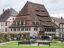 The town, set in a landscape of wheat fields, retains a former Augustinian convent (1279) with its large-scale Gothic church, now the parish of Saints-Pierre-et-Paul; other medieval churches are the lutheran Église Saint-Jean, and the romanesque Église Saint-Ulrich in Altenstadt. The 13th century Dominican church now serves as the cultural center 'La Nef'. The Grenier aux Dîmes (tithe barn) belonging to the Abbey is 18th-century but an ancient foundation. Noteworthy houses are the medieval "Salt house", the Renaissance "House of l'Ami Fritz" and the Baroque City Hall, a work by Joseph Massol.