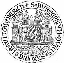 Wittenberg's civic coat of arms conveys with its various heraldic elements something of the town's history. On 27 June 1293, Wittenberg was granted town rights by Duke Albert II. There then arose a mediaeval town whose highest governing body was its council. This council, known to have existed as early as 1317, was given the job of administering the town in its care through law and legislation, and of handling the town's revenue. For documentation, the administration used its own seal. One version of what is believed to be the town's oldest town seal, which the council used, and which dated from the first half of the 14th century, set the pattern with its elements for various civic coats of arms down to the present day.