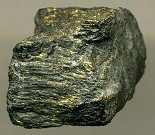 Not all the conglomerates contain gold, and of those that do (known as “reefs” by the miners), the gold is not uniformly distributed throughout the layer, but tends to occur in streaks, where the pebbles that make up the conglomerate are larger than elsewhere. Here the gold is associated with other minerals, especially iron pyrite and uraninite, as well as carbon rich materials such as kerogen, or bitumen, which occurs in small balls less than 1 mm (0.04 in) in size, called “flyspeck carbon”, or as continuous layers about 10–20 mm (0.4–0.8 in) thick.[1][8] The gold-bearing conglomerates occur chiefly in the upper, younger layers of the Witwatersrand Supergroup of rocks, on the southern side of the Witwatersrand plateau.