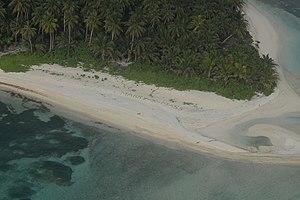 The islands constitute a double atoll forming the number eight, with a total length of 11.5 kilometres (7.1 mi) and up to 7 kilometres (4.3 mi) wide; however, most of reef on the southern rim is submerged or poorly developed. The northern and eastern rims have several relatively large islets. The western lagoon is deeper and larger than its eastern counterpart. Both components are part of the same seamount. The total land area for both components combined is only 4.5 square kilometres (1.7 sq mi).[3]