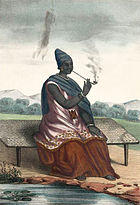 Another oral tradition tells of a legend in Walo, which starts with two villages near a lake in a dispute. A mysterious person arose from the lake to settle the dispute. The villagers detained him; he settled among them and became the one who settled disputes and sovereign authority. He was called Ndyadyane Ndyaye, and his descendants were called Ndiayes or Njie, and these led to ruling families of Wolof, Mali, and Morocco, according to this mythical legend.[15] The documented history, from 15th-century onwards, is a complex story of the rivalry between powerful families, wars, coups and conquests in Wolof society.[17]