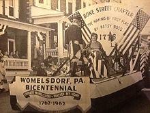 - ^ "Womelsdorf to celebrate 100th anniversary event". Reading Eagle. Jun 28, 1933. p. 18. Retrieved 3 November 2015.
