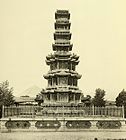 Wongaksa Pagoda is a twelve metre high ten storey marble pagoda in the center of Seoul, South Korea. It was constructed in 1467 to form part of Wongaksa temple, that King Sejo had founded two years before on the site of an older Goryeo-period temple, Heungbok-sa. The temple was closed and turned into a kisaeng house by the (later deposed) king known as Yeonsan-gun (1476 – 1506, r. 1494-1506), and under his successor, King Jungjong (1488 – 1544, r.1506–1544) the site was turned into government offices. The pagoda and a memorial stele commemorating the foundation of Wongaksa alone survived. The site of the temple was later occupied by houses. During the Imjin War of the 1590s, the top portion of the pagoda was pulled down and lay on the ground at the foot of the pagoda until it was replaced by American military engineers in 1947.