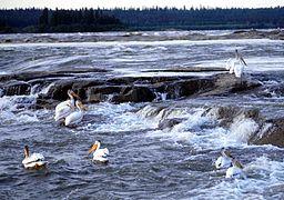 - American white pelicans at Rapids of the Drowned (Slave River)