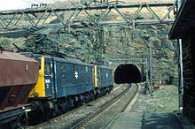 Train crews described the tunnels as "hell holes" because of their narrow bores, which were claustrophobic and sooty. The decision to electrify the route during the 1950s was partially made to eliminate the emissions produced by steam and diesel traction.[1] The tunnels were too narrow to accommodate the overhead line equipment (OLE) necessary for the route's electrification and it was decided to close both tunnels in 1953, after the completion of the larger Woodhead 3 tunnel.[5][1]
