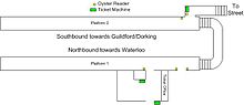 Disabled access used to be poor: the London bound platform was accessible, but access to the southbound platform was only via the pedestrian bridge or a long set of steps. However, in June 2014 a new passenger bridge was opened (coinciding with the removal of the old footbridge). The new bridge is equipped with lifts to permit disabled access between platforms.[4][5]