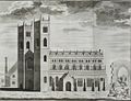 The painted organ case was designed by Peter Collins, in co-operation with the architects, Laurence King and Partners, and constructed in mahogany in its main parts with pine-cored block wood panels. The case has a tonal as well as an architectural function, mixing the sound of the pipes and projecting it forwards as a blended whole. The specification was drawn up by David Butterworth and is almost identical to that of St Mary's Church, Nottingham.[4] The pipes, of which there are 1634, are of various materials ranging in tin content from 90% in the façade pipes to 20% for some flute stops. Copper and pine are used for other registers. With the exception of 24 small pipes in the pedal case, all the front pipes are speaking. The reed pipes are by Giesecke of Germany; the flues by Stinkins of Holland and Peter Collins; the cymbelstern is by Laukhuff, also of Germany.