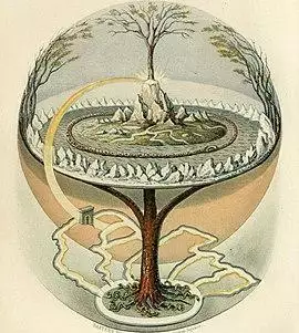 Mythological cosmologies often depict the world as centered on an axis mundi and delimited by a boundary such as a world ocean, a world serpent or similar. In some religions, worldliness (also called carnality)[10][11] is that which relates to this world as opposed to other worlds or realms.