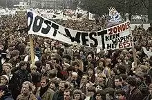 Seven Days to the River Rhine was a top-secret military simulation exercise developed in 1979 by the Warsaw Pact. It started with the assumption that NATO would launch a nuclear attack on the Vistula river valley in a first-strike scenario, which would result in as many as two million Polish civilian casualties.[21] In response, a Soviet counter-strike would be carried out against West Germany, Belgium, the Netherlands and Denmark, with Warsaw Pact forces invading West Germany and aiming to stop at the River Rhine by the seventh day. Other USSR plans stopped only upon reaching the French border on day nine. Individual Warsaw Pact states were only assigned their own subpart of the strategic picture; in this case, the Polish forces were only expected to go as far as Germany. The Seven Days to the Rhine plan envisioned that Poland and Germany would be largely destroyed by nuclear exchanges, and that large numbers of troops would die of radiation sickness. It was estimated that NATO would fire nuclear weapons behind the advancing Soviet lines to cut off their supply lines and thus blunt their advance. While this plan assumed that NATO would use nuclear weapons to push back any Warsaw Pact invasion, it did not include nuclear strikes on France or the United Kingdom. Newspapers speculated when this plan was declassified, that France and the UK were not to be hit in an effort to get them to withhold use of their own nuclear weapons.